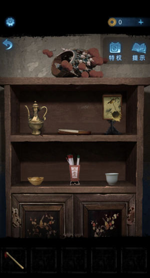 14、移动靠旗放在屋里桌上空缺处,然后就能获得布老虎,把布老虎、靠旗和布球放到供台上就能拿到钥匙,最后使用钥匙开启大门。