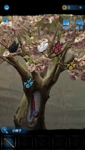 10、进入门后点击桌上报纸即可发现图案,上面还有一个棍子。
