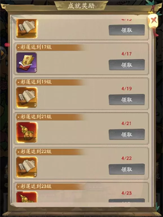 三、成就奖励根据[七彩莲心]等级,掌柜不要忘了在【成就奖励】中兑换[小金刚]、服装[神娃爆诞]、道具[宝葫芦]、[抽奖券]、[门客残帖]等。其中,[宝葫芦]还可以到葫芦灵山使用,为葫芦娃们拿到更多服装,希望能为掌柜和葫芦娃们降妖除魔贡献一份力!
