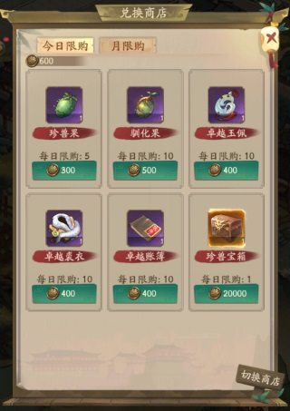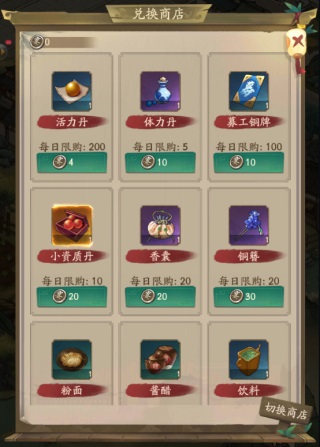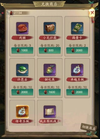 发展到一定时间的掌柜许愿石和驯化果必买,玉佩选择性购买。如果是刚开始汴梁生活的掌柜那捣蛋卡和肉脯也必须安排上!毕竟捣蛋任务完成还有知己可以获得,肉脯也可以帮助前期闯关。阅历箱的购买优先级可以低一点,因为越到后面会发现阅历根本用不完。