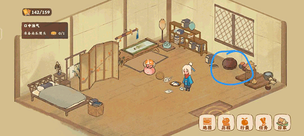 烹饪环节是个小游戏,用扇形指针停在红色区域来决定菜量,虽然有点看运气,但如果能再增加确定性的小区域就更好了。总体来说,这款游戏像是一幅徐徐展开的山水画卷,让人在忙碌的生活中找到一片宁静之地,挺适合放松心情的。