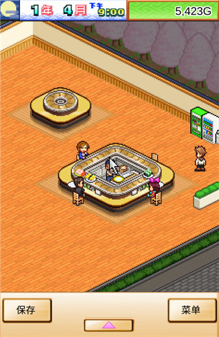 进入游戏之后,大家就能看到开罗游戏风满满的那种像素画风了,看起来是不是很有新奇感呢?当然,需要在这里提醒大家的是,小编自己的海鲜寿司物语目前的存档为28年9月,游戏中的各种摆设和布局,在新手阶段都是没有的。如果您是第一次玩的话,刚进入游戏,只会有一些最简单的设施。