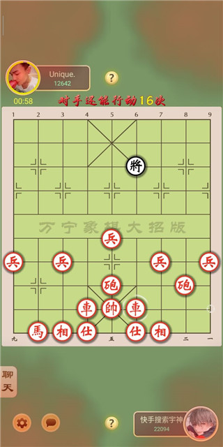 万宁象棋是一款古风的象棋游戏,拥有奇妙的阵法残局解谜以及三人对战模式,还有各种在线对战和玩法,玩家们不仅可以体验传统的玩法,还可以感受新的创意挑战模式。并且游戏里的各种难度等级,都可以按照自需求来,还可以拥有无中生有,离间计等大招,让游戏变得更加有趣。游戏拥有四种模式,例如三十六计、连环计、经典模式和残局模式,每一中的模式玩法都不一样,并且每天第一次进入对战,都可以领取一份奖励。游戏还可以联机对战,在线匹配队友。