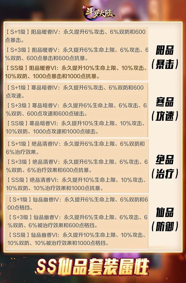 当然,SS仙品升级可获得的属性也会随着培育额外提升,达到SS时额外提高的属性会多出一倍以上。