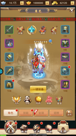通过角色面板、技能面板、坐骑、翅膀进行战力提升