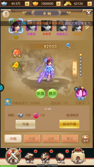 1、通过巾帼等级、升星、法阵、尊位进行提升