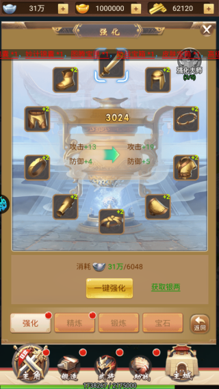 通过装备的锻造、精炼、锻炼、宝石镶嵌提升装备战力