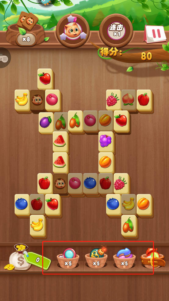 3、被挤在中间的水果是不能消除的,需要把旁边的水果消除掉先;