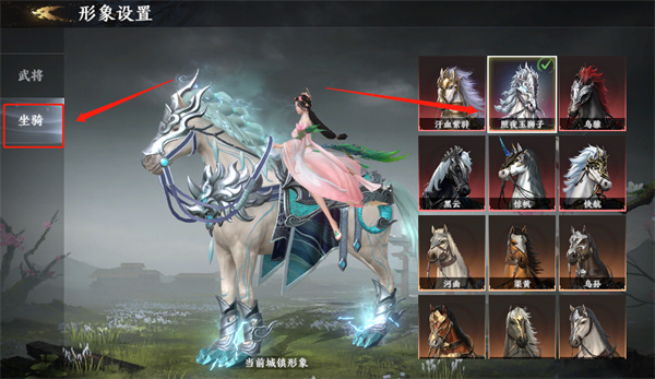 同样是在【形象设置】页面——点击左下方【坐骑】页签即可。