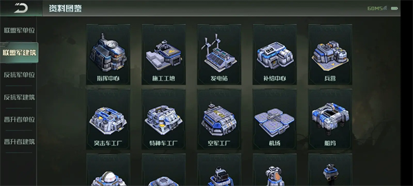游戏里一共15座建筑,游戏里将这些建筑分为三类:经济、军事、防御。这个系列为了更加方便统计,把原本归为军事类的超级武器移入为各自阵营特色项里(包括各阵营的超级武器,防御塔,战略)