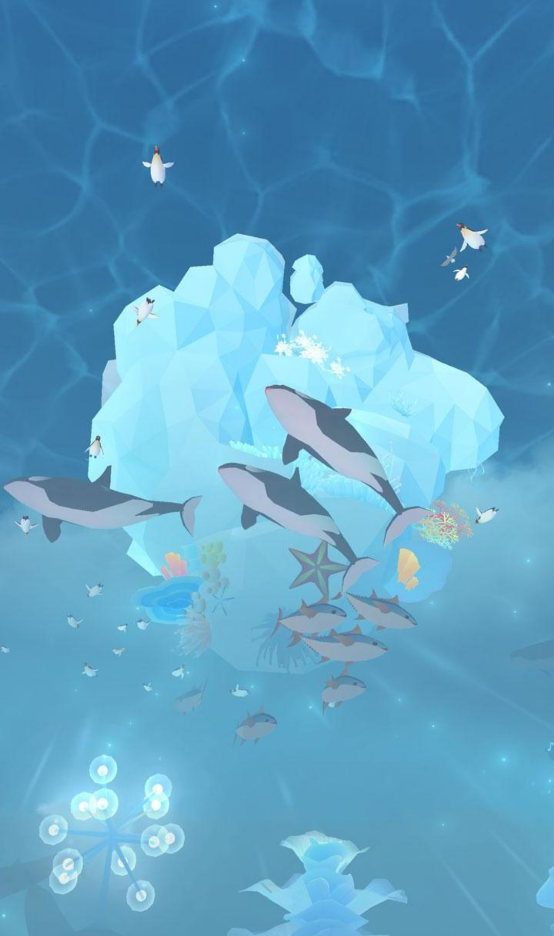深海水族馆极地是由FLERO GAMES出品的改写独立游戏历史的治愈类游戏《深海水族馆》的续作,这次的世界更加广阔,一块漂浮在海面的巨大冰岛,除了鱼类之外,还有海獭、驼鹿、麝牛等多样的极地动物,你要聆听宁静的旋律,找出最快的方法,让这块极地慢慢充满生机。整个游戏氛围延续了前作的风格——美丽,宁静,治愈。旋转屏幕,可以欣赏潜伏在海里的冰山一角。你还可以跟拍某只动物,看看它日常在哪里晃悠,跟着它的视角欣赏这片风景。游戏的美术质量十分过关,稍稍令人有些失望的是,玩法倒是没有太大的突破之处,总结起来就是--点点点。点击可以产生爱心,爱心能解锁大片珊瑚,生出繁茂的冰枝,培养斑斓的海葵,新植物吸引海豹、鳕鱼、企鹅前来参观...形成一个完美的闭环!