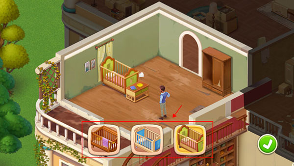 2、跳过一些剧情介绍,我们开局需要帮小宝宝布置房间,首先是婴儿床