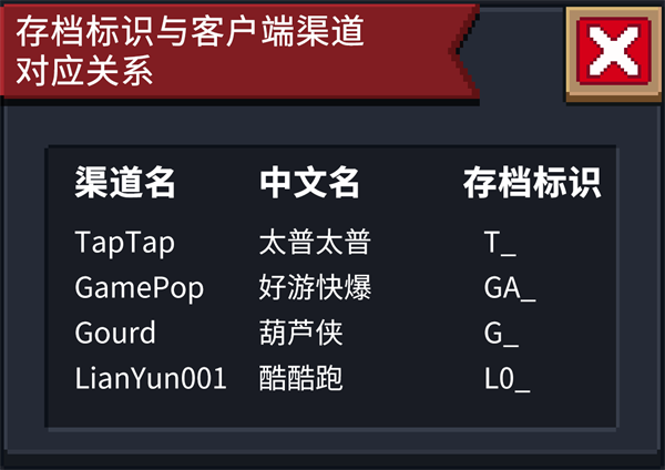 从自己的存档标识(例如T_)找到对应的渠道(TapTap),然后对比自己客户端所属渠道(例如好游快爆),看是不是与存档标识一致对应