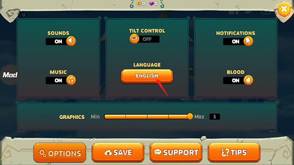2、进入“菜单”界面>点击“LANGUAGE”选项下方的“ENGLISH”;