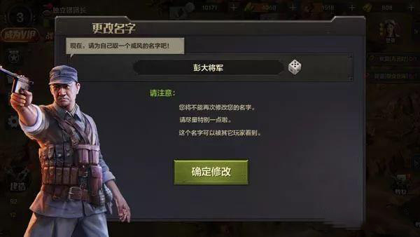 在经历了亮剑手游的一些基础玩法后,您将需要为自己取一个英雄之名,这将成为响彻整个战场的名号,“谁敢横刀立马,为我彭大将军”。
