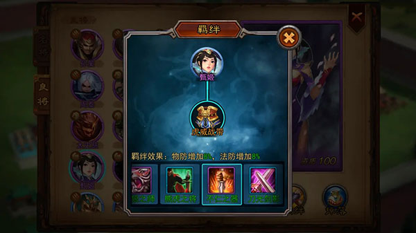 羁绊效果:兵力增加8%或者防御增加8%
