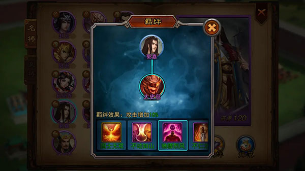 特点:羁绊组合加成也很高,要求相对低,只需要两个将领便可达成,属于防御型羁绊。
