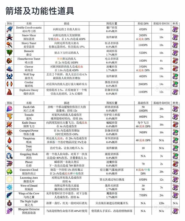 A+:双向弩弓塔、捕兽夹、药剂双向弩弓塔是紫色战术箭塔流的第二箭塔选择,在没有重型箭塔的时候可以带。捕兽夹适用于打精英怪和Boss,对于一些怪物,在捕兽夹夹到之后,可以绕到怪物的身后输出,怪物就会产生僵直,非常安逸。(卡王手和时钟守护者必带)药剂,任意绿流都可以选择的一个很好的功能性道具,瞬间回复40%血并且无敌3S,不管跑图还是打Boss都很好用。在2细胞之后,地图没有恢复血量的血瓶,这时候一个可以回复40%血的药剂就显得非常重要,药剂在用完后进入下一个地图会自动充满,相当于带了一个小血瓶。