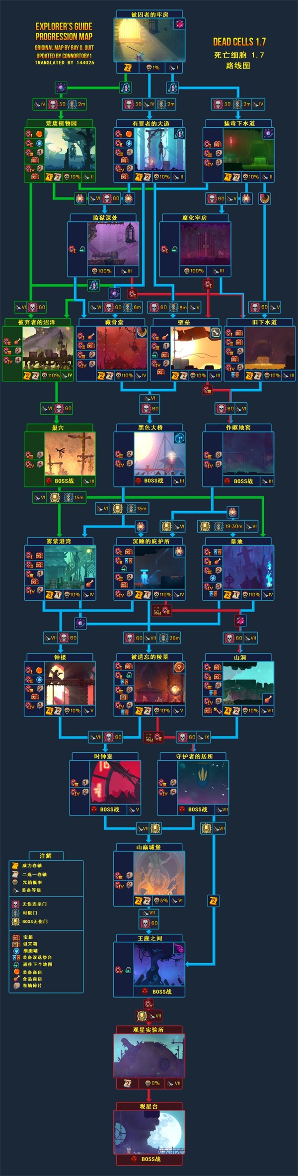 这是1.7版本的线路图,可以参考一下,看不懂的地方注意看注解(绿色的线是坏种DLC才会更新的,可以先忽略)