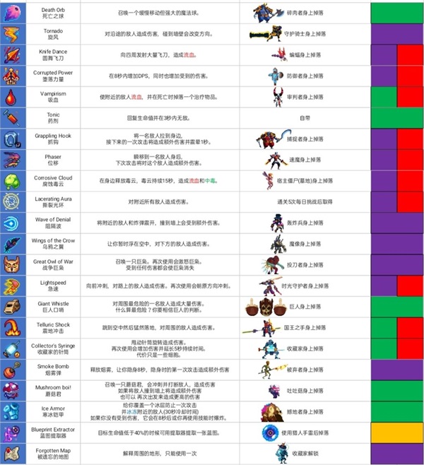 以下的图是道具和武器的图鉴