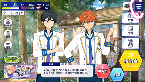 游戏的剧情承接《偶像梦幻祭》的剧情,由知名轻小说家“日日日”主笔,偶像们正式从校园走向社会,但成长和蜕变的过程中不是一帆风顺,总是充满了各种疑惑、踌躇、欢笑和泪水,他们在合唱广场里每天都上演着不同的羁绊故事,让玩家充分融入沉浸其中,每分每秒都牵动心弦!