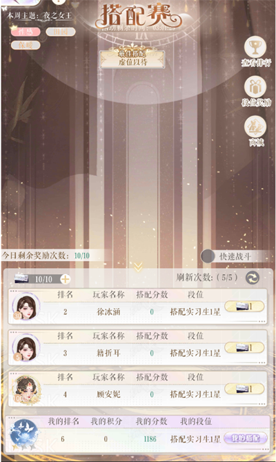 小主需要注意的是,每周搭配赛需要小主至少进行一次战斗才能领取奖励的。