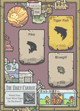 3、鱼分两种,一种是普通的鱼,一种是特别的鱼,特别的鱼会在特定时间特定地点出现,要留意村布告栏的报纸。