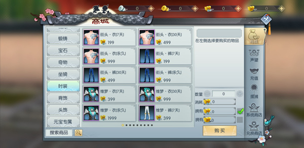 时装可到商城中购买,点击游戏界面右上角“商城”,选择“时装”分页,即可查看时装商城界面!