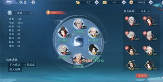 2、由于不同卡槽的转化比例不同,因此建议将高阶与高等级的侠客放入比例转换较高的位置。
