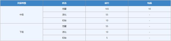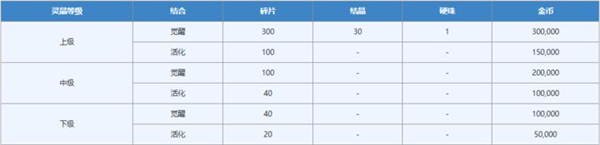 不同等级的灵晶在激活和觉醒时消耗的资源不同。灵晶结合必须在猫神神社进行操作。
