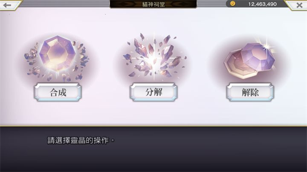 刚获得的灵晶没有实际属性,不能装备,需要在猫神神社进行“合成”后方可使用。