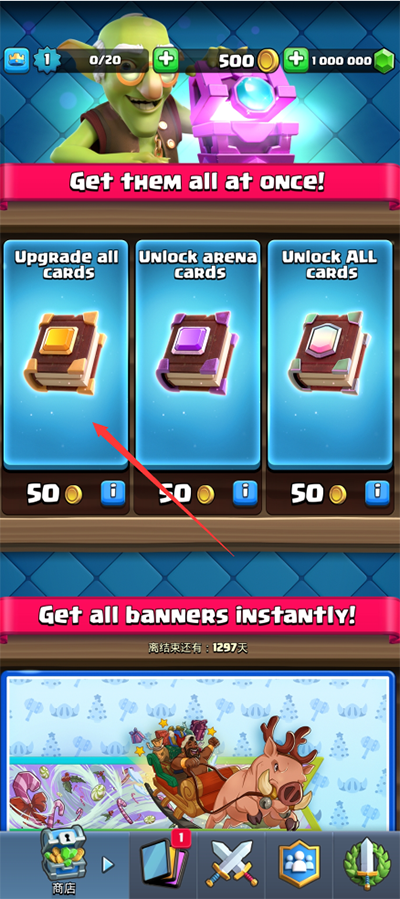 2、赢取宝箱来解锁奖励、收集强大的全新卡牌并升级已有卡牌