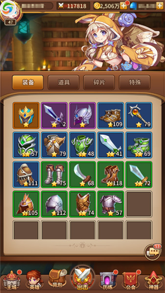 集齐失落在冒险大陆的各种神器后就能进行神器培养了,经过培养的神器将在战斗中提供属性加成,不同的神器还有各自专属的神器技能,让你轻松获得战斗胜利~