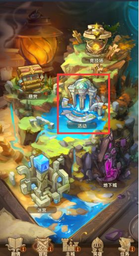 首先我们点击主页冒险按钮进入另一个界面,再界面中我们可以看到‘活动’的图标,点击进入。
