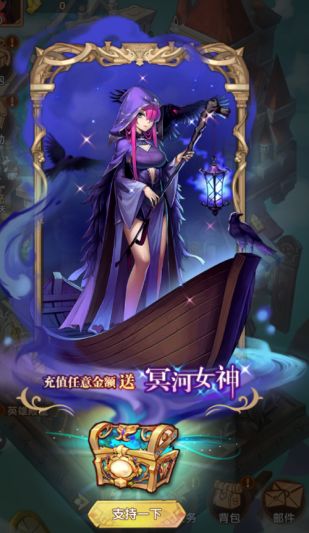 首充:充值任意金额赠送中立卡牌:冥河女神