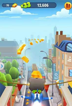 “飞机”或许是汤姆猫跑酷2里人气值最高的道具了。玩家拾取该道具后,可在一段时间内驾驶飞机翱翔天际,完全不必担心撞上障碍物;同时,飞行路线上还会出现大量金条,只要操作得当,这段“上天”时间就能让你赚得盆满钵满。需要注意的是,飞机的飞行速度比玩家在地面跑酷的速度快很多,如果手速不够快,便可能错过捞金的大好时机。因此,想要成为合格的飞行员,小伙伴们就得努力提升自己的变道技术。