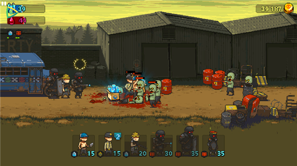 除了不断出兵消灭僵尸,我们还可以投掷油桶给予僵尸伤害,在战斗的过程中还可以不断收集勇气值、金币、油料等资源。有意思的是,当我们的伙伴战死之后,某些种类的僵尸会将其同化,那么这意味着你的敌人会更多,完成任务的难度会更大。