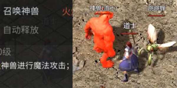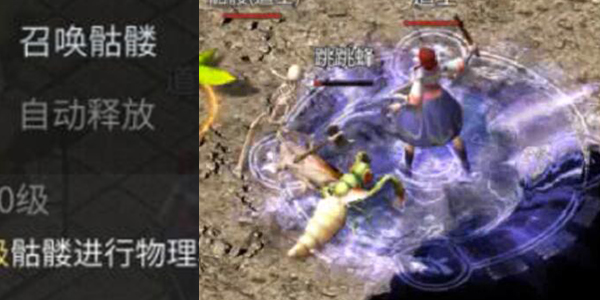 召唤骷髅/召唤神兽:道士的标志技能,控制骷髅和神兽为自己所用,在前期刷怪时能大大提高效率并且吸引仇恨保障自身的安全。
