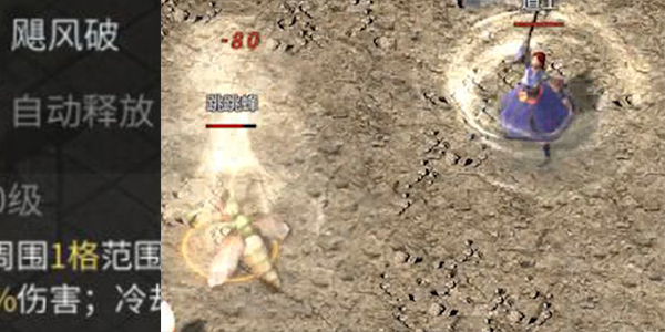 飓风破:道士比较稀缺的群体爆发技能,汇聚狂风之力对目标区域造成较高的伤害。