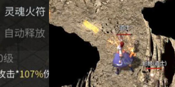灵魂火符:道士的基础输出技能,掷出一枚符咒对敌人造成伤害。