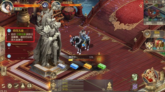 组队进行太庙搬砖任务可以增加换砖次数,队友换取的砖块品质全队享用,需都在附近参与搬砖活动。