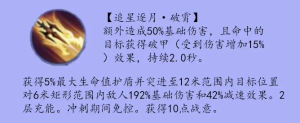1、破星:进入战斗后移动速度提升10%。