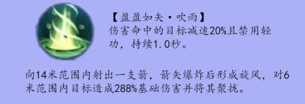 点评:可免控4秒,还能大范围的造成大量伤害并禁用轻功。对于自身输出低的职业,也算是进一步加强输出能力了。