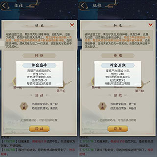 简单的说这个关系的是征程里夜猎(相当于地下的神游)次数和收获多少,神格越高收获越多(例如:神宗巅峰和神宗后期的收益效果如下图,是有差别的)。正常不用避劫丹的话,是3天才可以打一轮(一轮必须2胜才可以进阶神格,否则神格降级)。每一阶神格,又分为入门、初期、中期、后期、巅峰5个小阶段,若是3天才可以挑战一个阶段,一个大阶段需要15天才能晋升一次神格。