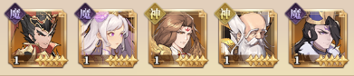 魔·吕布、魔·貂蝉、神·华佗、神·诸葛亮、魔·司马懿