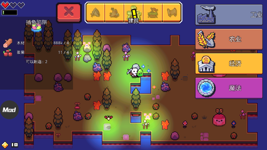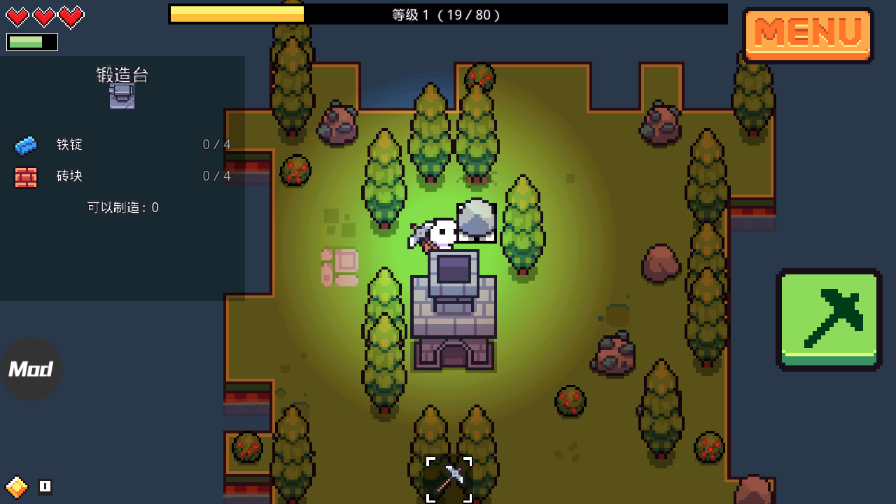 浮岛冒险是一款由知名游戏制作产商HopFrog制作、Humble Bundle所发行的一款非常好玩的像素风2D生存冒险类游戏,又叫浮岛物语、Forager,它的灵感来自于众多探索类,农场类和建造类游戏,比如《星露谷》,《泰拉瑞亚》以及《塞尔达》系列。游戏采用了经典像素风格设计,画风显得非常的朴实,非常像很多90后童年时代的街机游戏,但画面感却更加清晰美观,Q萌的人物场景设计简直萌翻大众玩家,可以带给玩家不一样的游戏体验。