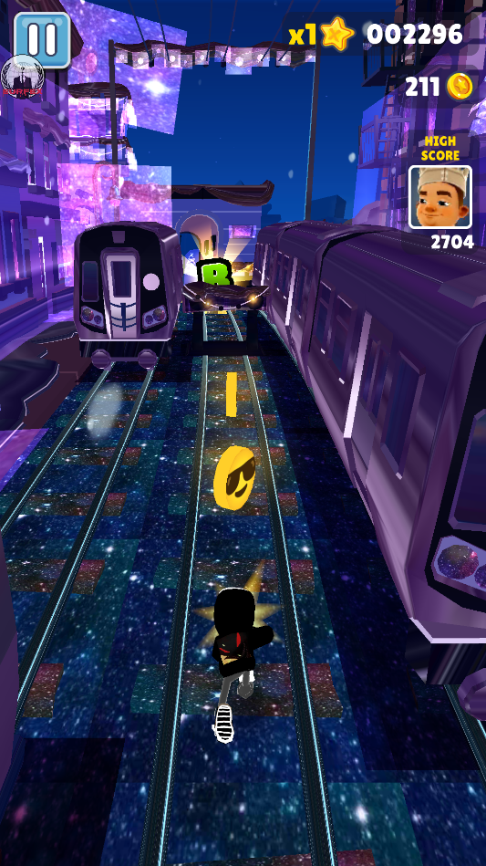 地铁跑酷宇哥4.0版本是根据地铁跑酷而定制的魔改版本,整个地图的背景都变成了紫色星空的设计,让地铁跑酷呈现出一种浪漫的柔和美。游戏中可拾取的金币修改成了墨镜酷酷的笑脸金币,整个体验起来就想是在星空上跑酷一样,手感非常好。游戏玩法非常简单,上滑手指可以使主角跳跃,下滑手指可以使主角滑行,左右滑动手指则可以在不同的轨道上切换。玩家需要巧妙地操作,以避免与列车相撞、撞到障碍物或被追捕者抓住。且在这个过程当中你还可以获取许许多多的道具,比如火箭推进背包、气垫滑板等等,以此用来轻松的躲避警察的追捕。游戏中有多个可供选择的角色,每个角色都有独特的特殊能力和外观,玩家可以选择不同的角色和滑板皮肤,为你的跑酷提升手感。如果你也想体验不同风格的地铁跑酷,不妨试试这款地铁跑酷宇哥4.0版本,感兴趣的朋友快来当快下载体验吧!
