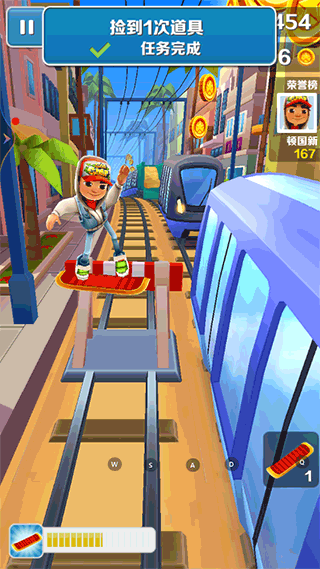 地铁跑酷威尼斯海滩版是发生在意大利水城威尼斯海滩的特殊版本,来到这个美丽的水城开始紧张又刺激的跑酷,依旧是被地铁大叔抓捕的一天,操作还是和以前一样的简单,但是可不要因为操作简单就掉以轻心哦,在这里帅气的小船夫马可也会登场,他邀请你们去参加蒙面聚会,但是去到聚会要跑过长长的地铁,加油,期待你的冒险。这一次的版本会新增威尼斯风情的贡多拉滑板,跑酷得路上不仅会遇到急驶的地铁,还会看到摇摆的小船哦,并且这一次如果能够打败好友,登顶排行版,还有机会获得超级惊喜大礼哦,还等什么,威尼斯海滩等着你的奔跑,感兴趣的小伙伴们赶快来下载吧。