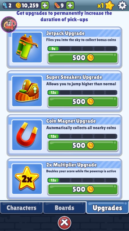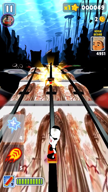 3、地铁跑酷很多道具都会对跳跃产生影响,比如跑鞋、助推器、跳跃道具等,特别是跳跃道具,可以跳到上方吃到很多金币,但是下落时,需要及时变更方向。