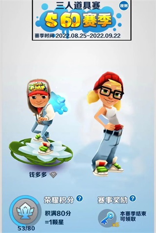 在地铁跑酷中每隔一段时间将会进行赛季排名,排名越高奖励就越多。赛季段位又分为青铜、白银、黄金、铂金、钻石、王者六个段位。在每个赛季结束时,玩家们达到相应段位,即可在赛季结算的时候获得对应的奖励。